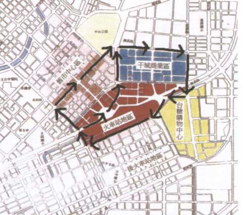 (三) 干城地區、台糖大型購物中心、與火車站地區之人行動線系統圖