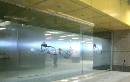 『游泳者』的設置位置為一連續性且具阻隔作用的玻璃,創作者巧妙運用人的眼睛隨移動視點所產生視覺影像聯結的現象,企圖讓經過此處的旅客隱約見到一個正在游泳的人整個運動過程中每個肢體的擺動。