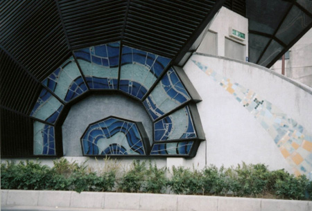作品材質:玻璃磚、磁版、馬賽克、洗石子、金屬棚架