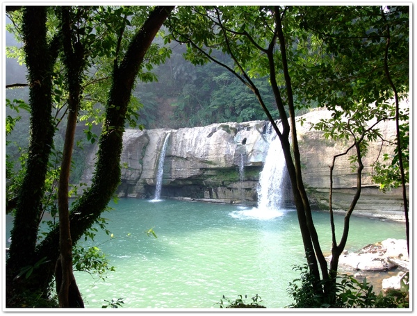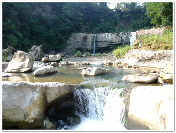 二層岩層疊狀,雨嶺腳瀑布合稱「三潭」
