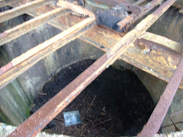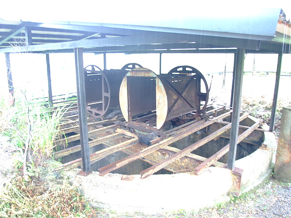 之後再沿著煤礦輸送帶旁步道向上,穿越輸送帶涵洞,會看見翻車臺與卸煤斗。卸煤斗直徑約為6公尺長,深度約為5公尺深。