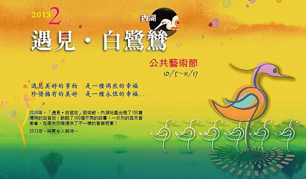 2010年,「遇見˙白鷺鷥」藝術節,內湖文德地區出現了100隻獨特的白鷺鷥,訴說了100個不同的故事,一系列的露天音樂會,在周末夜晚提供了不一樣的音樂饗宴!