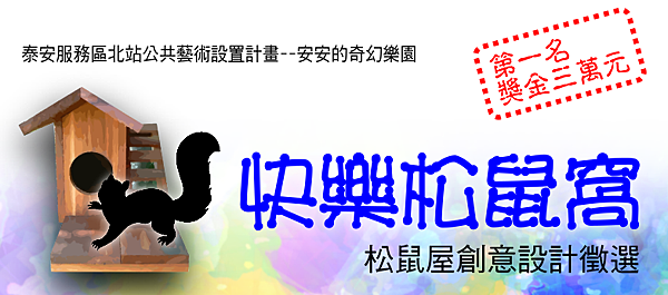 材質、尺寸不限,但原則需以可耐候之材料完成,可供實際裝置於戶外,吸引松鼠棲息、覓食或玩耍之小型松鼠屋。